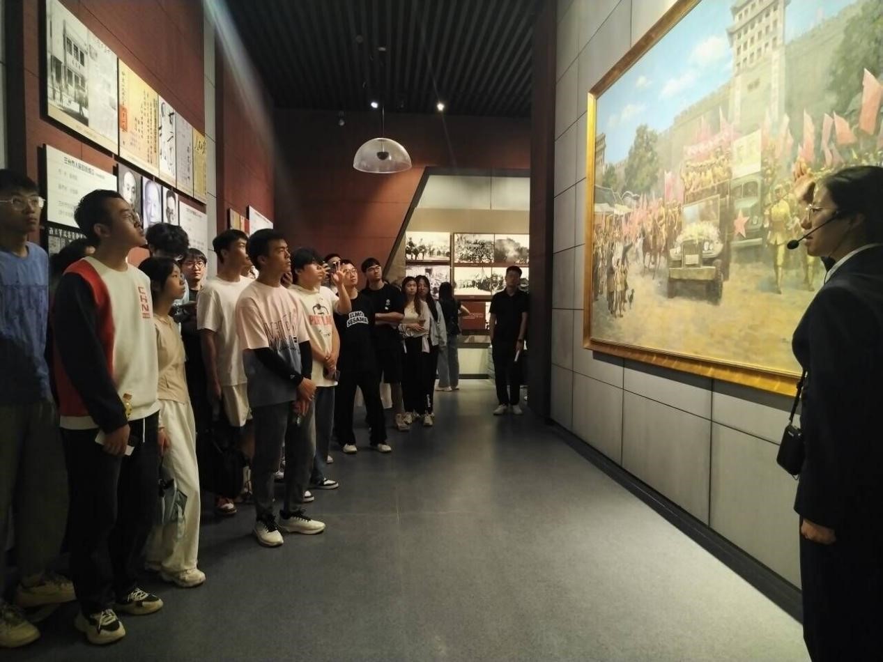 在讲解员的引导下,师生们首先走进《西北大决战》展厅,分别参观了奏响西进序曲、实施千里追击、浴血南山之巅、聚歼青马主力、欢庆西北解放五个单元。通过珍贵的档案文献、丰富的历史图片及独特的作战形势图表、雕塑、油画和沙盘等展现形式,师生们循着革命先辈的足迹,回溯峥嵘革命岁月,学习兰州战役的历史背景、作战经过和英雄事迹,生动了解中国人民解放军第一野战军解放兰州的全过程。此外,师生进一步认识了兰州战役的重要作用,兰州决战胜利后,第一野战军相继解放青海、宁夏、河西走廊以及新疆等地区,兰州战役一战定四省的战果,为新中国成立作出了巨大贡献。