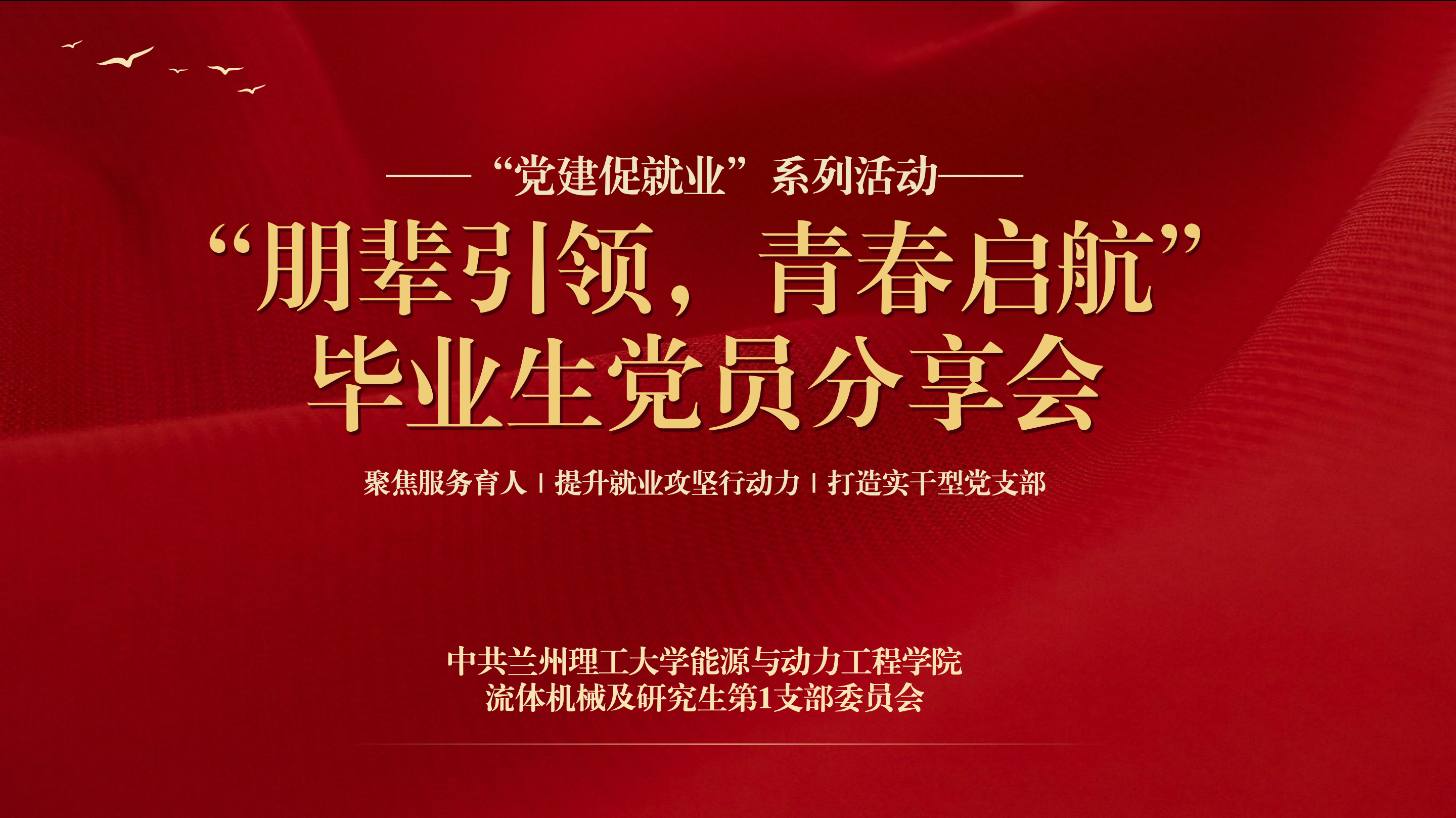 为充分发挥毕业生党员先锋模范和朋辈示范引领作用,6月11日,能动学院流体机械及工程研究生第1党支部在兰工坪校区尚学楼406开展党建促就业系列活动—“朋辈引领,青春启航”毕业生党员分享会,活动邀请到毕业生党员何坤雲、唐玉财、王璐毅、张睿作主题分享,支部党员、入党积极分子参加分享会,会议由支部书记彭如麟主持。