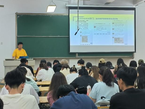 许丹针对大学生普遍关注的权益问题进行了讲解,如何运用法律手段来维护自身合法权益,强调了个人隐私及信息保护的必要性,希望同学们保护好个人信息。学生会权益部同学现场向大家展示了校园维权的具体途径与方法,解答了关于失物招领、维权投诉等在校园生活中常会遇到的问题,引导大家在遇到困难时有效地保护自己的权益。