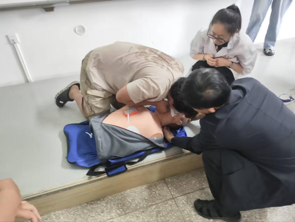 在应急救护知识培训环节,郭爱军老师首先分享了几个身边的案例,让大家更加直观、深刻地体会到普及应急救护知识、掌握基本急救技能的必要性。他强调“心脏骤停急救的黄金时间是4到6分钟,每提前1分钟,抢救的成功率会增加10%”。随后,郭老师从现场急救概论、灾难事故造成的伤害、急救注意要点等方面为大家进行了深入的理论指导。特别强调了胸外心脏按压、人工呼吸的正确姿势、操作频率和具体方法,并详细讲解了海姆立克急救法(Heimlich Maneuver)和AED(自动体外除颤器)的正确使用方法。