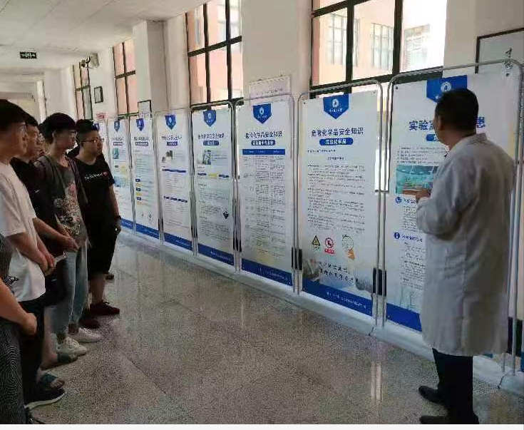 6月28日,相关实验室组织开展“安全宣传咨询日”活动。活动主要包含学习实验设备使用注意事项、掌握实验设备日常维护基本要求和了解高温设备的操作要领等。活动过程中,各实验室负责人和相关同学向大家详细介绍了相关实验设备的使用方法和安全注意事项。在衡鉴楼(A馆)一楼大厅,利用展板进行危险源识别、自救等讲解,重点关注化学、生物、辐射、激光等类别实验需注意事项。