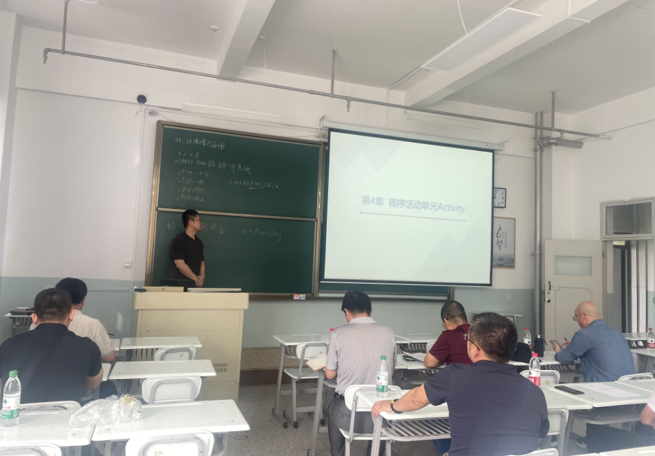在试讲环节中石耀科、史健、成玉丹、晁金龙四位老师分别从《MCU原理及应用》、《移动应用开发》、《现代密码学》和《算法设计与分析》课程中选取章节进行了试讲授课。