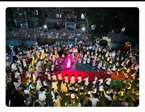 锅庄是一种富有民族特色的舞蹈,它传递着人们的团结和友爱,先由大二班小朋友带来了藏族舞蹈。最后大班幼儿和家长们一起围着篝火跳起来锅庄舞。共同庆祝这一天,小朋友毕业了。