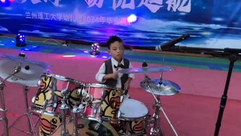 由大二班的李一宸和任洪琦带来的架子鼓表演。