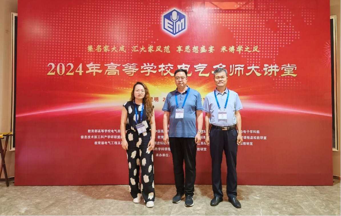 7月29日-7月31日,由教育部高等学校电气类专业教学指导委员会、中国高等学校电工学研究会、国家级实验教学示范中心联席会电子学科组及信息技术新工科产学研联盟能源互联网工作委员会等共同主办,昆明理工大学承办的2024年高等学校电气名师大讲堂在云南省昆明市顺利召开。为提高对教学理念、课程内涵、教学模式的理解,把握课程的教学重点与难点,推动在线开放课程的建设与推广,促进教学模式的创新改革,电信学院丁守成教授、黄瑞教授以及裴婷婷老师参加了本次会议。