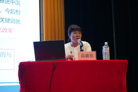 高璐佳以《领航新时代奋进新征程——深刻领会和把握党的二十届三中全会精神》为主题,紧紧围绕习近平总书记在党的二十届三中全会上的重要讲话和《中共中央关于进一步全面深化改革、推进中国式现代化的决定》,从深刻领会和把握进一步全面深化改革的重大意义、指导思想、总目标、重大原则、重大举措五个方面对党的二十届三中全会精神进行了解读。她旁征博引,结合时事热点和具体案例,使抽象的理论变得生动具体、易于理解,为同学们进一步学深细悟全会精神提供了有力指导。同学们表示,要发挥模范带头作用,持续深入学习全会精神,做到学深悟透、融会贯通,勤奋学习长本领、团结奋斗建新功,引领广大青年学生积极投身实现中华民族伟大复兴的生动实践中。