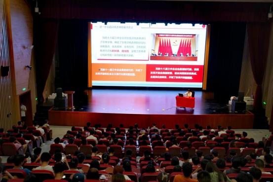 为深入学习贯彻党的二十届三中全会精神,引导广大红柳青年学子把思想和行动统一到全会部署的各项任务要求上来,把智慧和力量凝聚到完成全会确定的目标任务上来。9月3日晚,校团委邀请甘肃省委党校(甘肃行政学院)教务处处长、省委讲师团成员高璐佳教授作学习贯彻党的二十届三中全会精神宣讲报告。校院青马学员,校院学生会、研究生会负责人、社团负责人、团支书代表共计340余人参加。