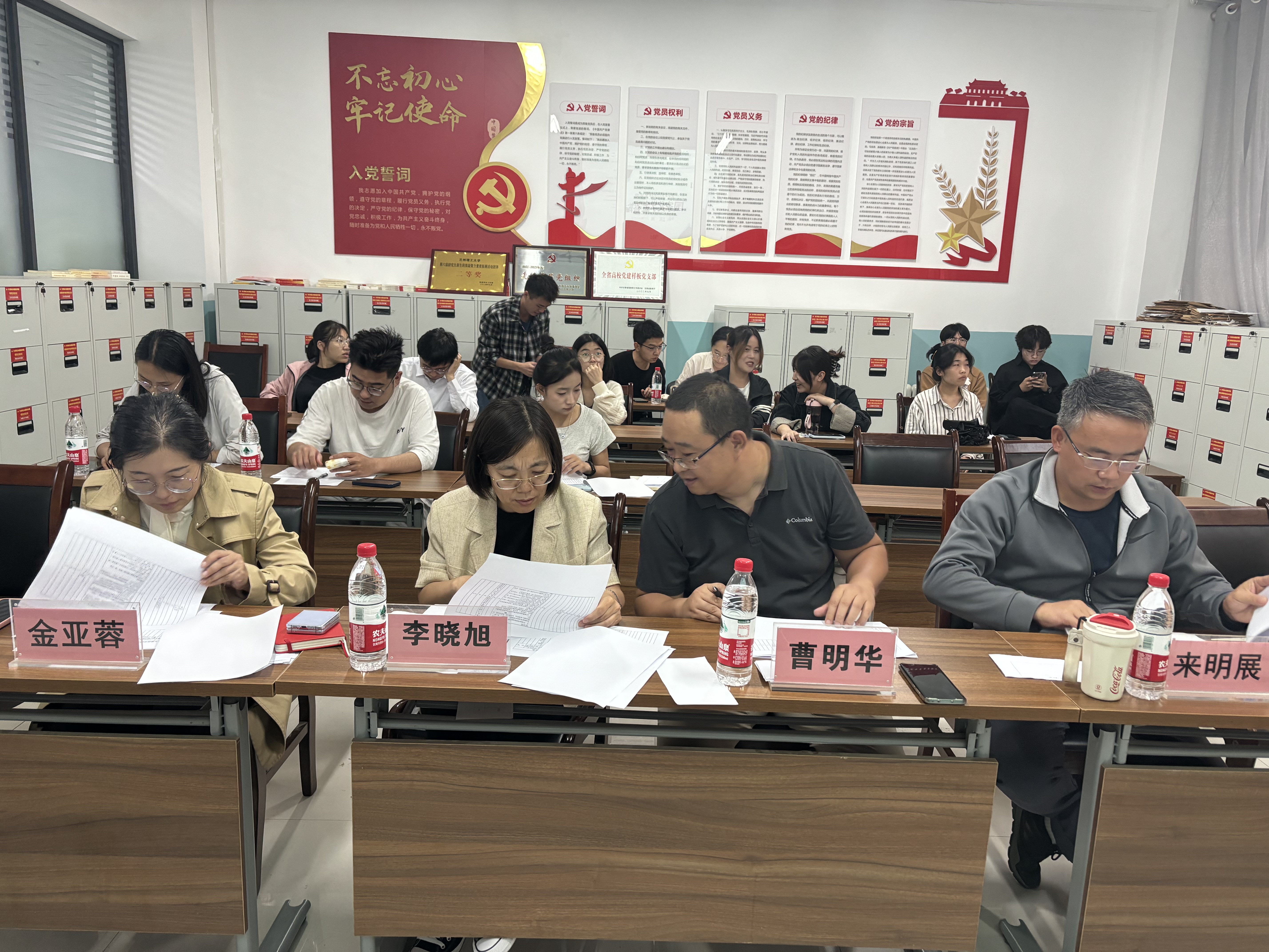 经过个人申请、辅导员初审和学院审核,本次答辩会共有13名学生参加,其中博士研究生2名,硕士研究生11名。刘老师首先简要说明了答辩流程和评分细则,随后,参与答辩的同学依次按照抽签顺序进行汇报。