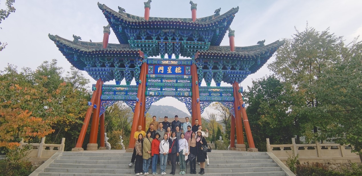 群山耸立连绵,红藤妩媚蹁跹。登顶黄河入目,国学馆内悟禅。