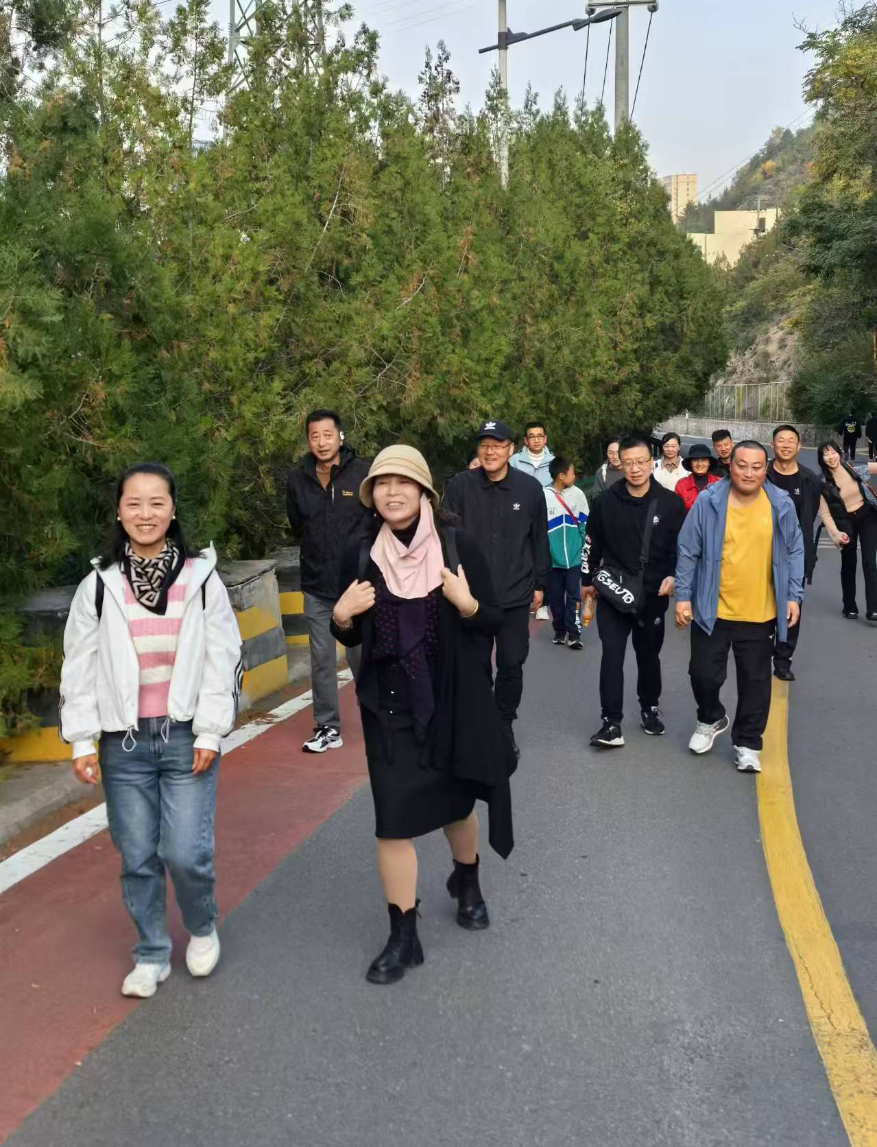 兰州的秋,银杏金黄,枫栌似火,山峦绚丽,黄河斑斓。10月19日,正值晚秋时节,医院组织职工徒步兰州最美罗九公路,赏九州秋色、览黄河盛景、品国学文化。亲近大自然,呼吸不一样的空气,用目光亲吻花草树木,飞鸟秋虫,用脚步丈量大山里的世界,心境别样愉悦。还是清晨,城市还未睡醒,我们一干人沿着罗九公路欢声笑语,徐徐前行,指画江山,路两旁群山巍峨,好奇的打量这群山外来客,山壁上的植被五彩缤纷,绚烂无比,尤其是红色爬山滕分外妖娆,将黄的树叶,绿色松柏和不知名的褐色草木比了下去。许多骑行高手时不时从我们身边呼啸而过,惹的人既羡慕又感慨。青山环抱,流水潺潺,曲径通幽,蜿蜒黄河尽收眼底,高楼大厦掩映在薄薄的雾霭之中。