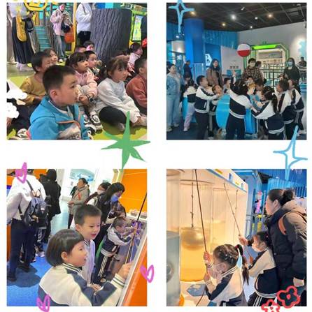 在老师的带领下,孩子们带着一种兴奋、一种好奇、一种期盼去参观科技馆。踏入科技馆的那一刻,仿佛进入了一个充满奇幻色彩的科学世界。孩子们的眼睛瞬间被各式各样的科技展品所吸引,从机器人表演到物理现象展示,从天文观测到生物奥秘探索,每一个展区都充满了惊喜与发现。