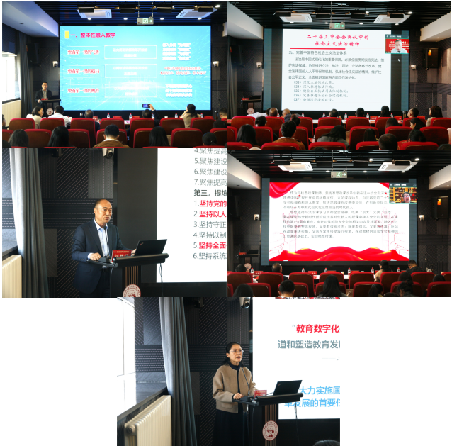 主题报告阶段,邀请了中央马克思主义理论研究和建设工程专家、“思想道德与法治”教材编写专家、中国政法大学李志强教授作了“从党的二十大届三中全会精神谈‘德法’课法治部分的教学设计”的主题报告。交流发言阶段,兰州大学李东坡教授解读了二十届三中全会融入‘思想道德与法治’的重点;兰州交通大学刘慧明教授围绕“推进中国式法治现代化、赋能大学生法治观教育”主题进行发言;河西学院蔺海鲲教授分享了“党的二十届三中全会精神融入‘德法’课的实践路径”,兰州理工大学马云霞副教授分享了“基于知识图谱的思政课数字化新形态构建与实践”经验。