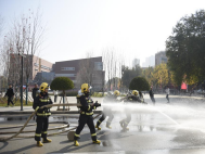 本次活动分四个部分开展。一是开展消防安全知识讲解。消防救援站教官现场讲解灭火器、自救式呼吸器等消防设施和灭火战斗服、抢险救援服、液压破拆工具组、救生抛投器等消防装备器材的使用方法,并着重讲解了火灾预防措施和应急处置流程;二是开展消防水带实操演练。消防队员们在极短的时间内迅速铺开消防水带,精准连接水枪,根据目标距离,调整水枪角度和阀门开度,对准目标区域进行喷水操作,消防队员们的反应速度和操作技巧赢得了现场师生的一片掌声;三是开展灭火实战演练。消防教官详细讲解了干粉灭火器的使用方法,并现场示范操作,细致讲解与亲身体验让参加演练的同学们受益匪浅;四是开展应急疏散演练。在消防教官的指挥下,拉响警报,演练师生迅速进入应急演练状态,要求用湿巾掩住口鼻,迅速有序地从教学楼疏散至安全地带,整个演练过程紧张有序,达到了预期效果。