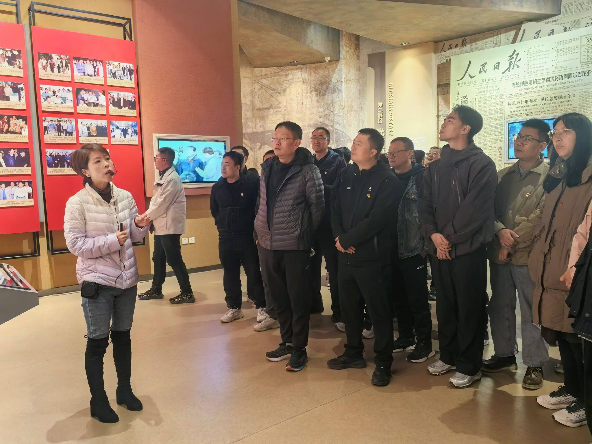 全体人员乘车前往兰州石化公司石油精神教育基地参观。基地内珍贵的历史照片、真实的文献史料、富有历史价值的实物以及30余处雕塑、场景、沙盘和多媒体等展项,诉说着产业报国的峥嵘岁月。在讲解员的带领下,大家深入了解了无数石油先辈们不畏艰难、无私奉献的感人事迹,深刻领会了苦干实干、三老四严的石油精神。