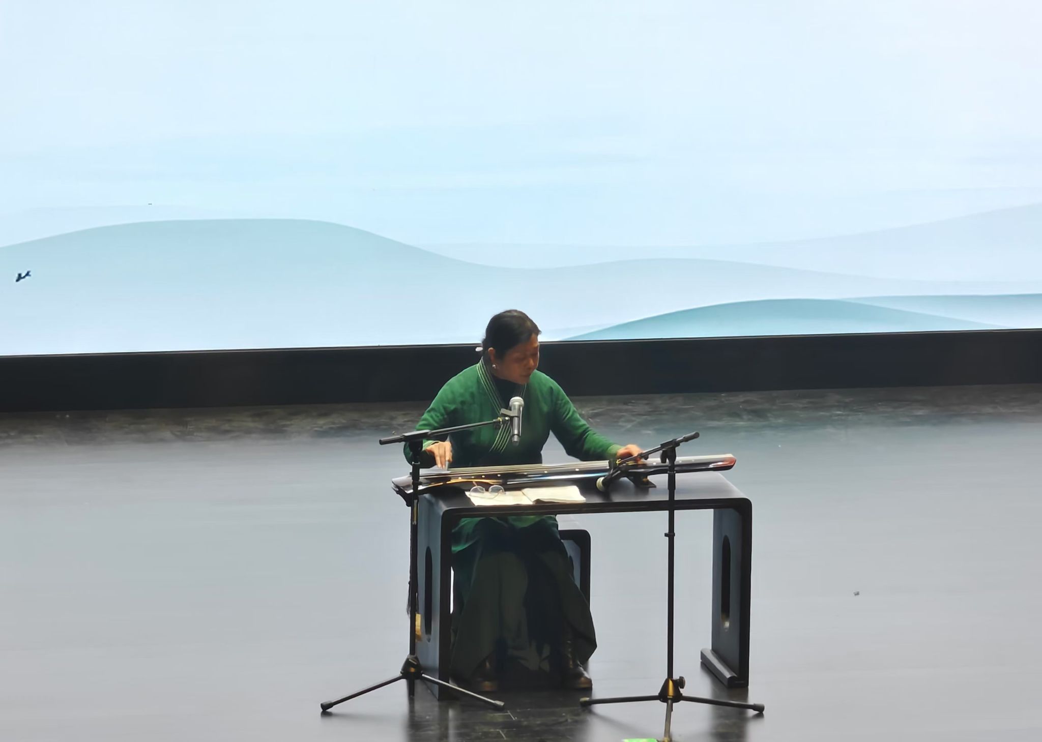 讲座中,胡宝琴老师深入探讨了五音疗愈之起源、琴音与人体的对应作用、古琴音乐与大学生的进取理念,以及古琴音乐与当代大学生的社交理念,她以讲述与现场弹奏的形式,演绎了7支曲目,与同学们进行了深入交流。她讲到,大学生面临学业、社交、就业、未来发展等诸多的心理压力,易产生焦虑、抑郁、烦躁等负面情绪,琴声能激发人内心的积极情绪,一些节奏明快,曲调激昂的琴曲能使人精神振奋,激发潜在的活力。培训将古琴演奏与心理健康教育融合在一起,有助于大学生保持平和心态,提升人文素养和审美情趣,培养高尚的道德情操和对生命的深刻感知。
