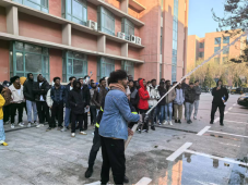 演练开始前,由专业消防工作人员对学生进行消防安全培训,重点介绍了各类灭火器材的名称、用法,强调了有关火灾现场的应急处置方法及使用灭火器的注意事项。同时,讲解了消火栓、消防水带的使用方法,并进行现场示范,让同学们亲自体验了消火栓连接水带的出水过程。
