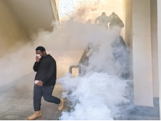 演练过程中,首先模拟火灾现场,组织开展应急疏散演练,同学们低头弯腰,用湿巾捂住口鼻迅速有序地按照指定路线应急疏散。随后开展灭火实战演练,消防工作人员现场示范灭火器的使用方法,并指导同学们进行灭火。