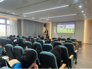 在学术交流环节,物理系青年教师白京陇博士作了题为《表面催化剂调控增强氧化铟基气体传感器性能的研究》的学术报告。他结合自己科研方向,分享了最近在气体传感器性能研究方面取得的重要进展。生动有趣的讲解,激发了在场师生对学术研究的热情。