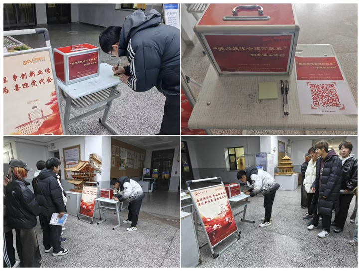 “我为党代会建言献策”创意征集活动采用线上线下两种形式共同展开。工作人员在线上制作创意征集二维码并张贴在学院教学楼,线下制作相关海报以及“意见箱”,广泛征集全院师生对学校发展及学院建设的建议与创意。