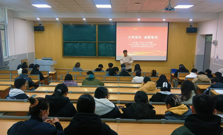 严考风考纪,立诚信根基,树道德新风。12月3日,设计艺术学院在琢玉楼124教室举办2024年硕士研究生统一招生考试考风考纪动员暨考前辅导大会。学院全体2025届毕业考生参加,辅导员马昱政主持会议。