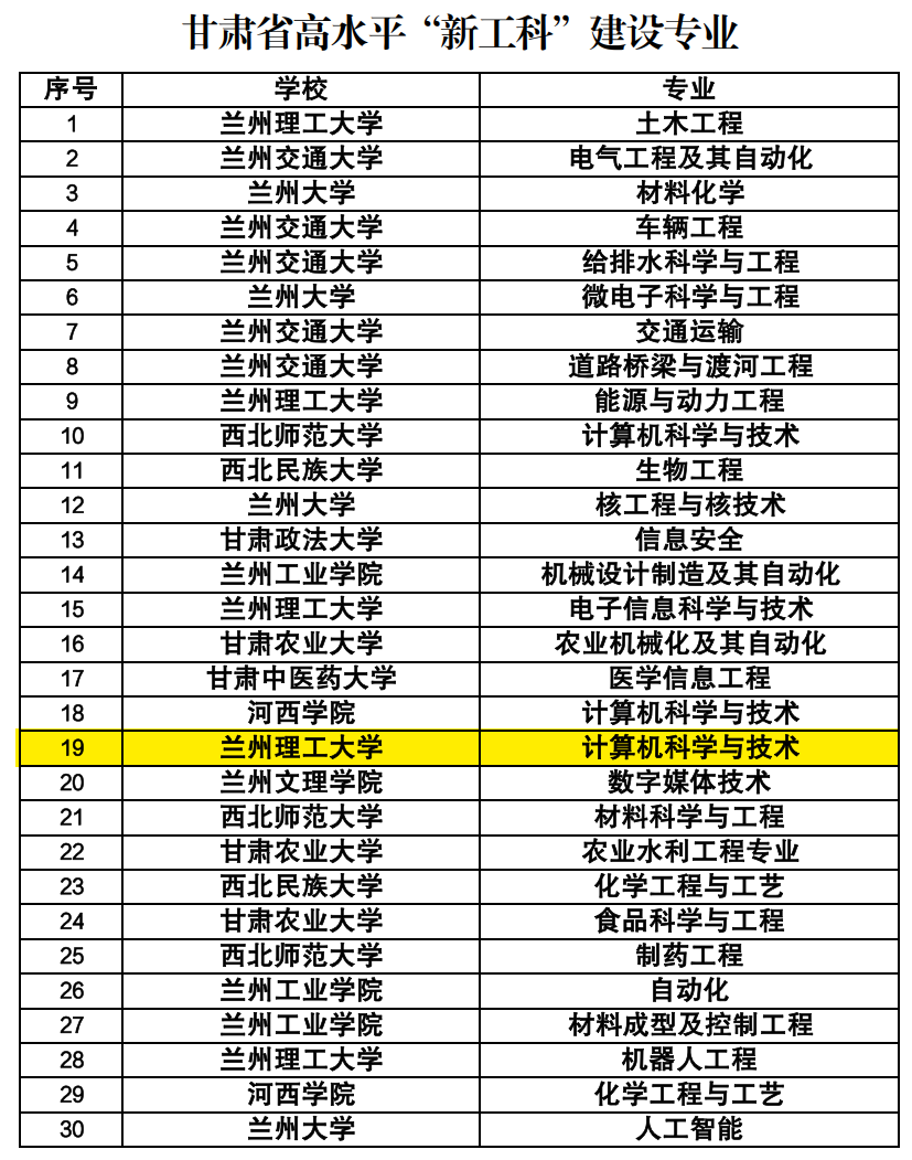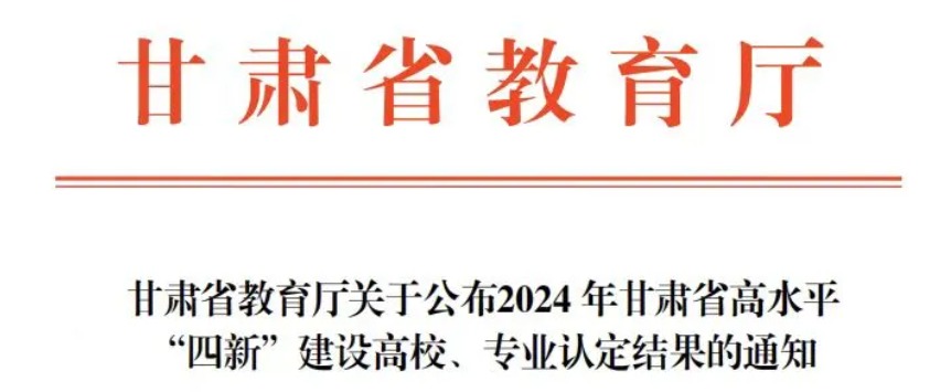 近期,甘肃省教育厅正式发布《甘肃省教育厅关于公布2024年甘肃省高水平“四新”建设高校、专业认定结果的通知》,我院计算机科学与技术专业入选2024年甘肃省高水平“新工科”建设专业。