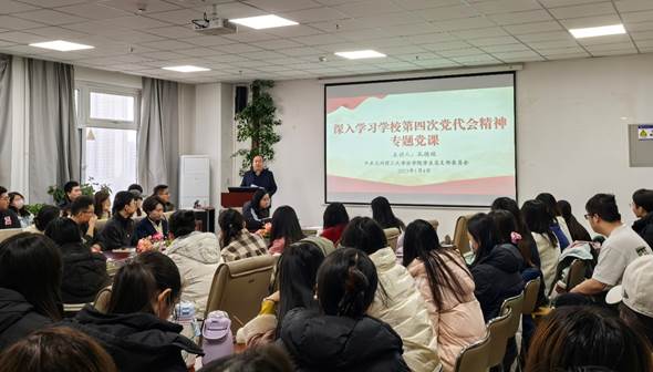 1月4日早上,法学院党委组织专题党课进一步学习学校第四次党代会精神。学院全体党支部书记、师生党员百余人参加,党课由学院党委书记孔德瑞主讲。孔德瑞紧密结合党的二十届三中全会精神,全国全省教育大会精神,传达学习学校第四次党代表会精神和赵立香书记在新一届党委委员、纪委委员参观校史馆时的讲话原文,结合学院实际详细解读学校党代会精神,并就学院师生如何贯彻落实进行安排部署。