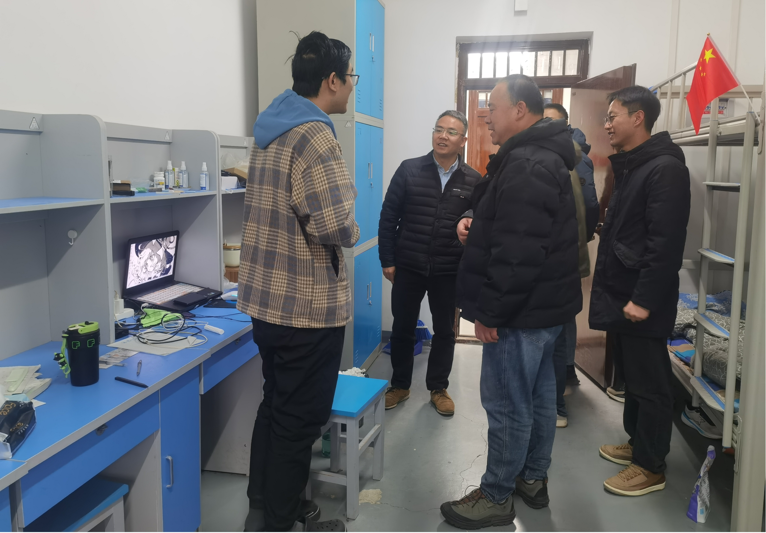 为深入贯彻学校第四次党代会提出的主动创稳、主动创安工作精神,落实好学校工作安排,确保寒假期间学院安全稳定,1月12日上午,学院党委书记郭备带队开展研究生工作室、实验室、各类办公区域以及学生宿舍安全检查与风险隐患排查工作,并看望慰问我院陈创辉同学。