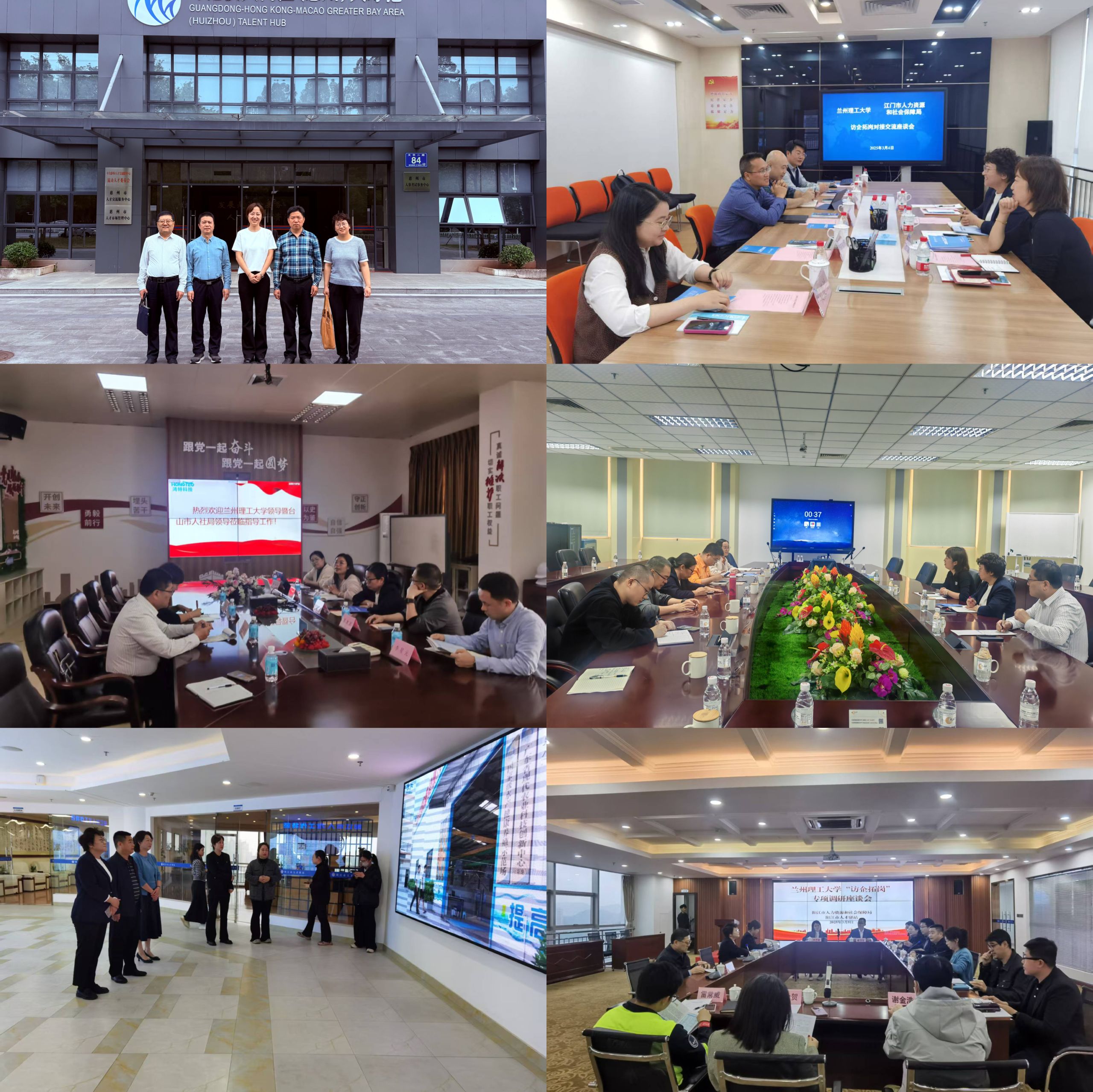 为深入了解企业经营、科技创新、产业发展、人才需求等方面的思路举措,调研团与惠州市人才交流服务中心、全国博士后创新(江门)示范中心、台山市人力资源和社会保障局、阳江市人力资源和社会保障局、东莞市人力资源服务中心相关部门负责人深入洽谈对接,聚焦行业发展趋势、企业规划方向,针对性地推介各专业学生,有效地凝聚双方合作共识。走访区域人社部门纷纷表示,诚挚欢迎兰州理工大学优秀学子到粤港澳大湾区就业创业,期待更多的高素质技术技能型人才为产业提供人才支撑。