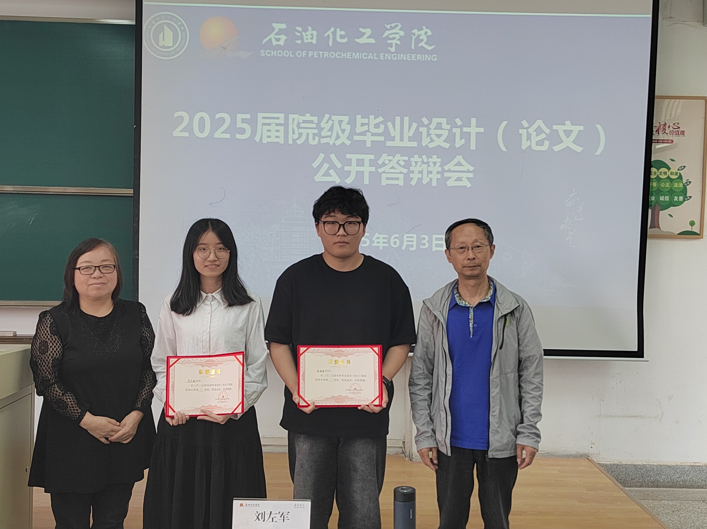 6月3日,石油化工学院在彭家坪校区集贤楼举行2025届院级本科毕业设计(论文)公开答辩会,会议邀请校级专家冯辉霞、杨保平、赵万勇、刘左军担任评委,各基层组织负责人及推荐教师参加。答辩会由学院副院长王东亮主持。