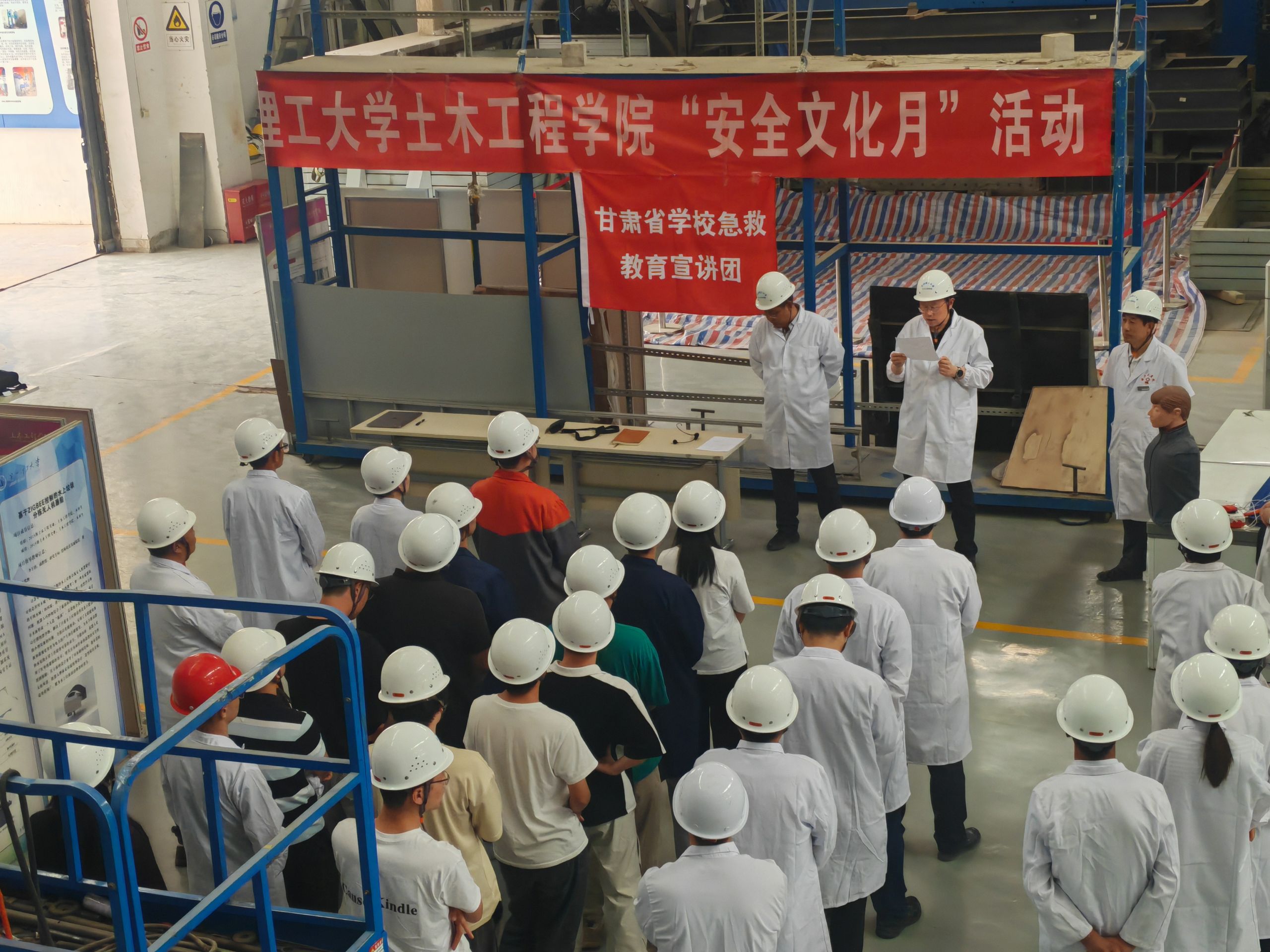 6月6日,学院实验室中心在兰工坪校区结构大厅举行了2025年度“实验室安全文化月”活动,学院党委书记赵炜、副院长王永胜、实验中心全体人员和学生代表50余人参加活动。活动对实验室师生安全意识的培养、安全制度的学习、安全评估与应急预案的实施、安全帽和工作服穿戴要求等方面进行了强调,要求大家谨记“不安全,不实验”,同时邀请兰州理工大学校医院医生郭爱军主任进行紧急急救培训。