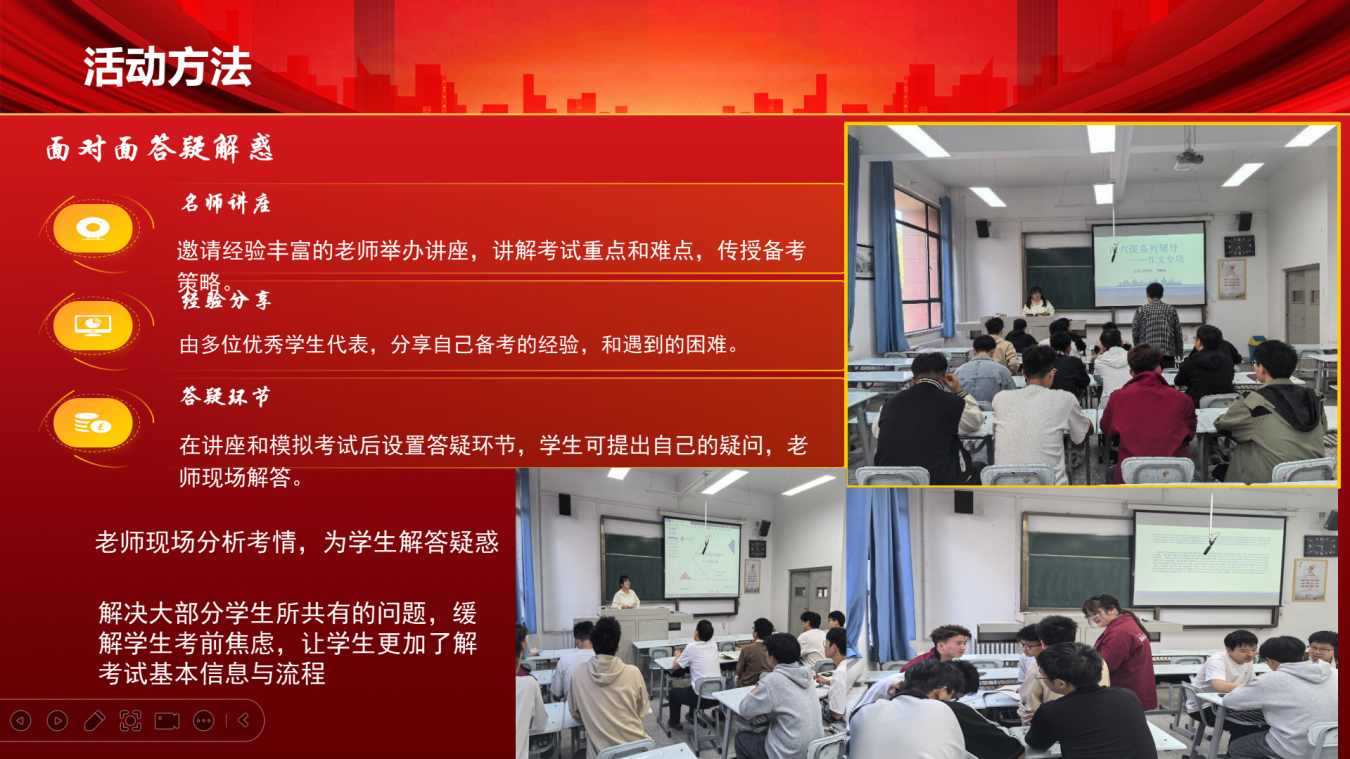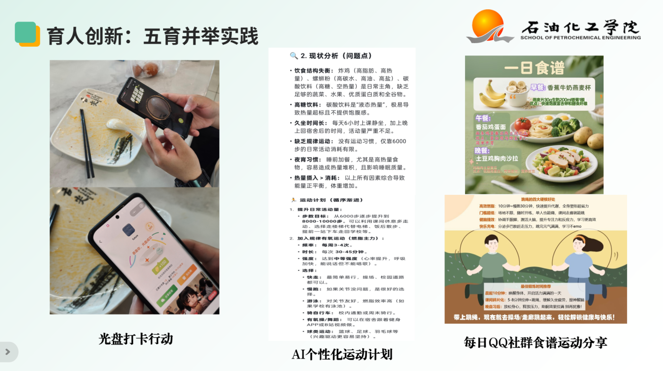 决赛现场,各参赛团队通过精心准备的PPT展示和精彩的答辩,向评委和观众详细介绍了各自开展项目的背景、内容、创新点以及实施效果。石化学院的健康管理计划通过精准体质监测、健康社群活动和阶梯式激励机制,帮助众多学生改善了饮食不规律、缺乏运动等问题,提升了学生的健康水平。土木学院的助考项目则通过考前辅导、心理疏导和应急服务,为考生提供了全方位的支持,助力学生顺利通过四六级考试,提升就业竞争力等。经过激烈角逐,石化学院“健康管理计划”与能动学院“防范电信诈骗活动”荣获一等奖,其余项目分获二、三等奖及优秀奖。