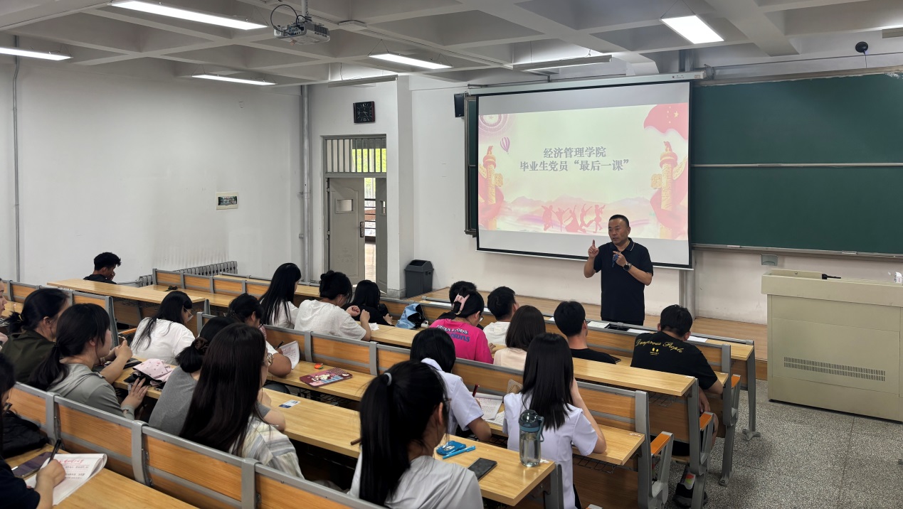 为深化毕业生党员党性教育,引导青年党员在人生新起点上永葆政治本色,6月18日,经济管理学院举办2025届毕业生党员最后一次党课活动。经济管理学院党委书记张清辉为毕业生党员讲授毕业前的“最后一堂党课”,全体2025届毕业生党员参加此次活动。