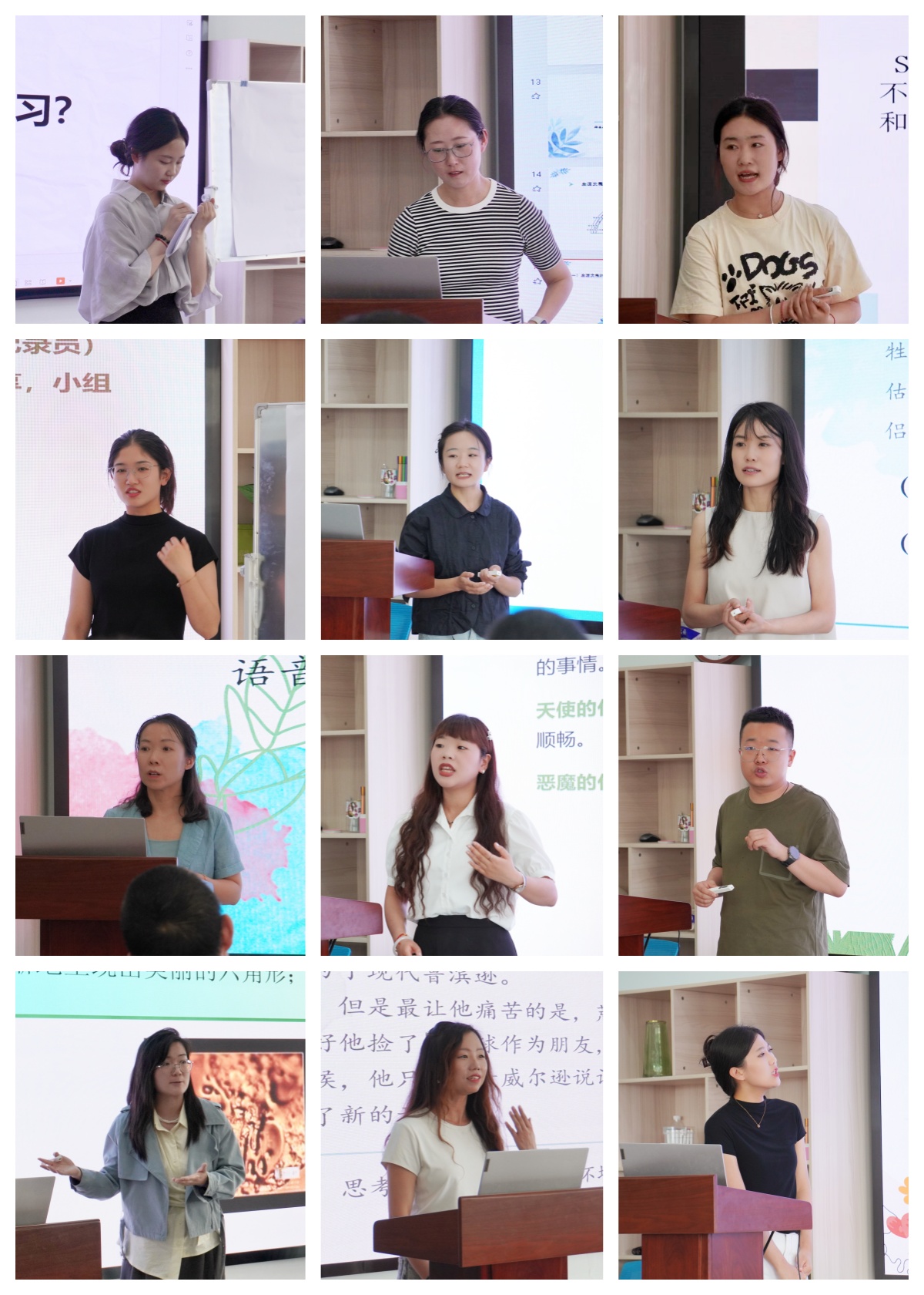 素质教育与教学中心主任邬再新、学生处副处长骆焕涛参加活动。素质教育与教学中心副主任杨东亚,军事理论课教研室纵雁,马克思主义学院黎龙翔、石蕾,机电学院樊洁平,学生处心理发展指导中心孔艳赟担任评委。12名新任课教师围绕学习动机、恋爱心理、人际关系、情绪管理等主题进行试讲,展现出扎实的专业功底与良好的精神风貌。