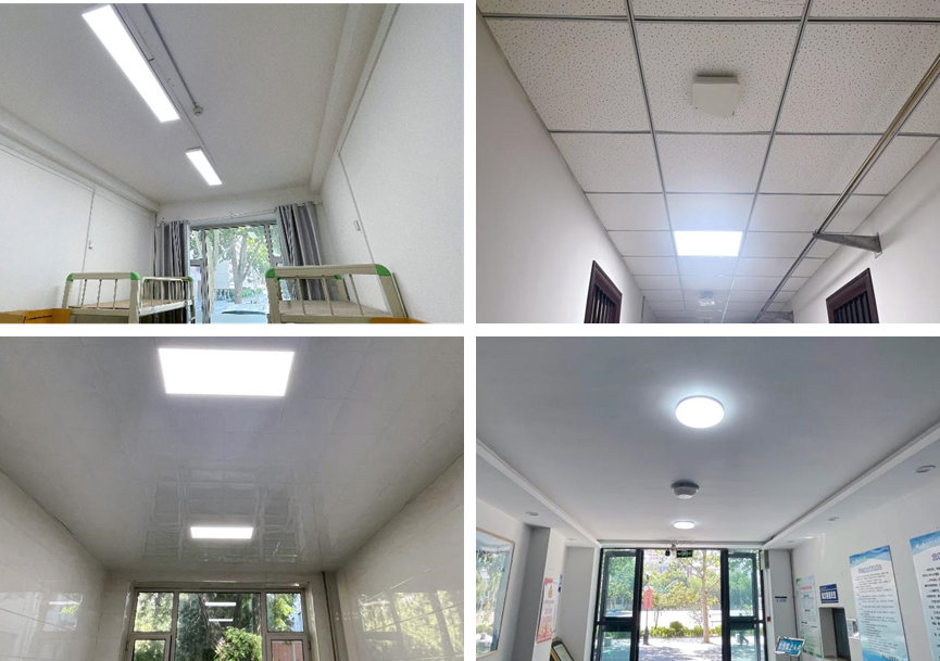 学生公寓作为大学生日常生活与学习的核心空间,其室内照明环境的质量至关重要。此前,两校区部分学生公寓楼宿舍内采用吊链式双管荧光灯,而楼道则配备内置白炽灯式吸顶灯,由于安装时间久远,这些灯具老化严重、照度不足、频闪刺眼、能耗偏高,早已无法满足同学们的学习与生活需求。