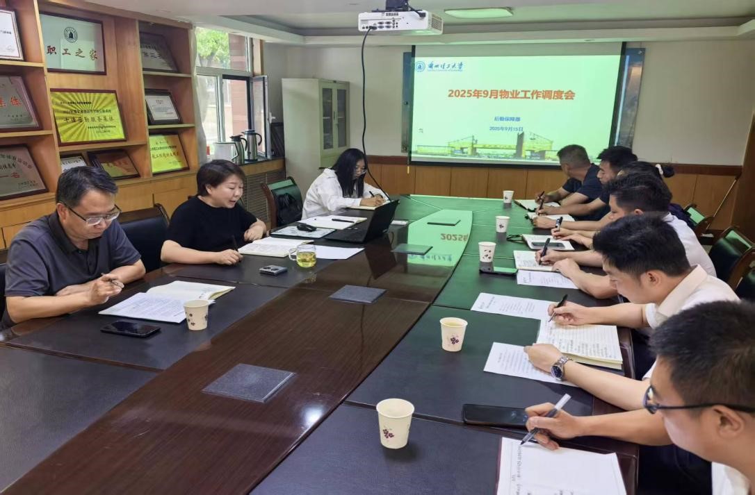 为进一步提升校园物业服务品质,压实管理责任,推动物业服务工作精细化、规范化运行,后勤保障部于9月15日利用线上线下同步方式召开2025年9月物业工作调度会。会议由后勤保障部部长张轶主持,副部长魏晋东、物业质量监管科人员以及各物业公司分管领导、项目经理和班组长参加。