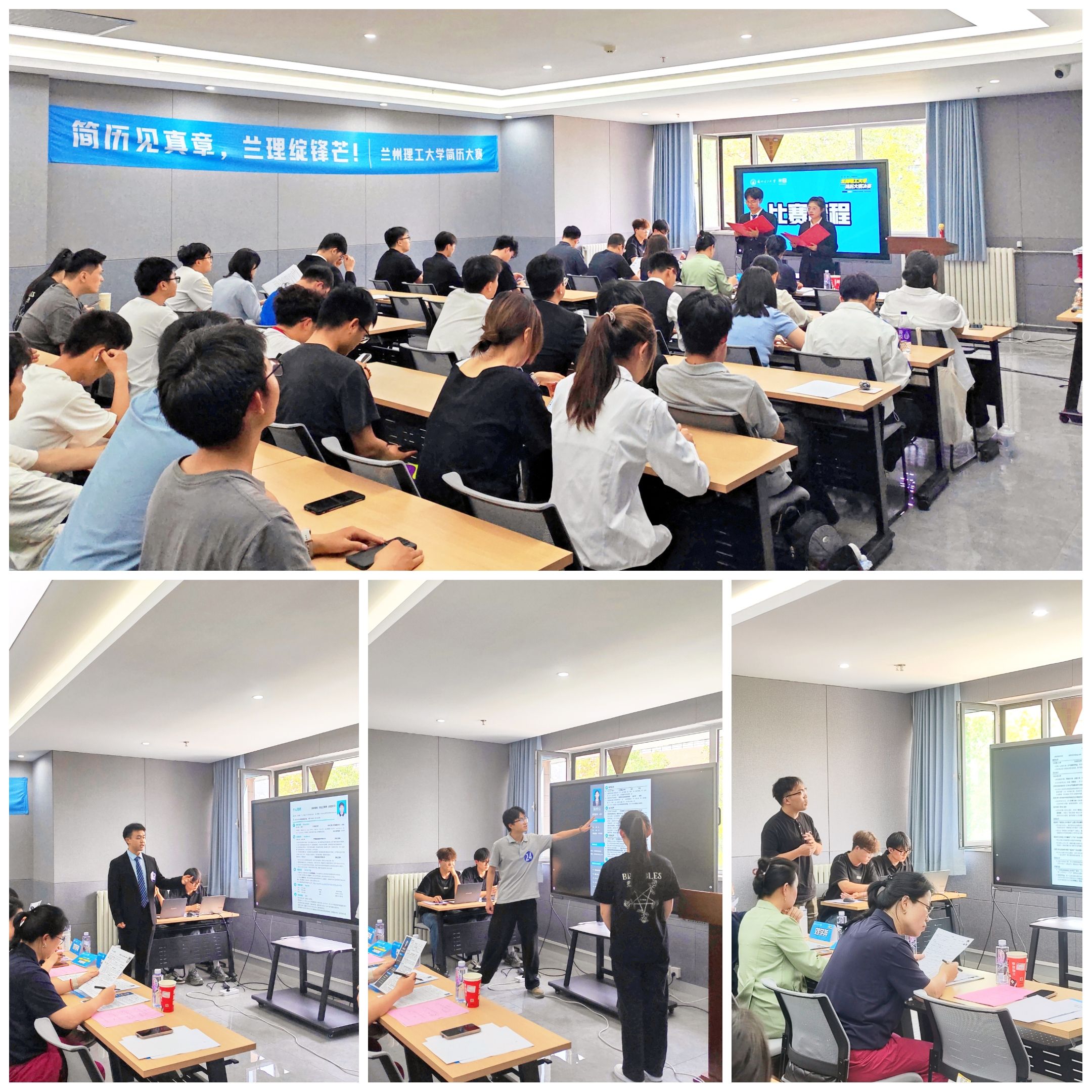 大赛分为三个阶段展开。在初赛阶段,评审团对300余份参赛简历进行匿名审核,重点考察内容是否完整、格式是否规范,评选出60份简历进入复赛。复赛重点针对简历结构、内容写法与实践经历进行考察,最终30份简历晋级决赛。决赛分为简历找茬PK赛、我的简历我来讲两个环节。评审团根据每位选手的个人展示及简历内容进行提问,针对选手综合表现进行打分并提出简历优化建议。