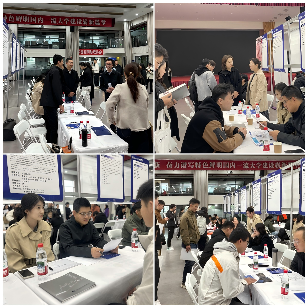 为促进2026届毕业生高质量充分就业,10月25日,建筑与艺术设计学院在兰工坪校区大学生活动中心举办2026届毕业生专场招聘会。专场招聘会邀请省内外14家行业内头部企业参加,涉及建筑学、城乡规划、土木工程、给排水工程、国土空间规划、艺术设计等多个专业毕业生需求,提供就业岗位超120个,企业类型多样,既有大型国有企业,也有知名民营企业,为毕业生提供了广阔的职业选择空间。参加招聘会的毕业生人数达300余人,近100名毕业生与用人单位达成就业意向,招聘会现场签订就业意向的毕业生近30名。