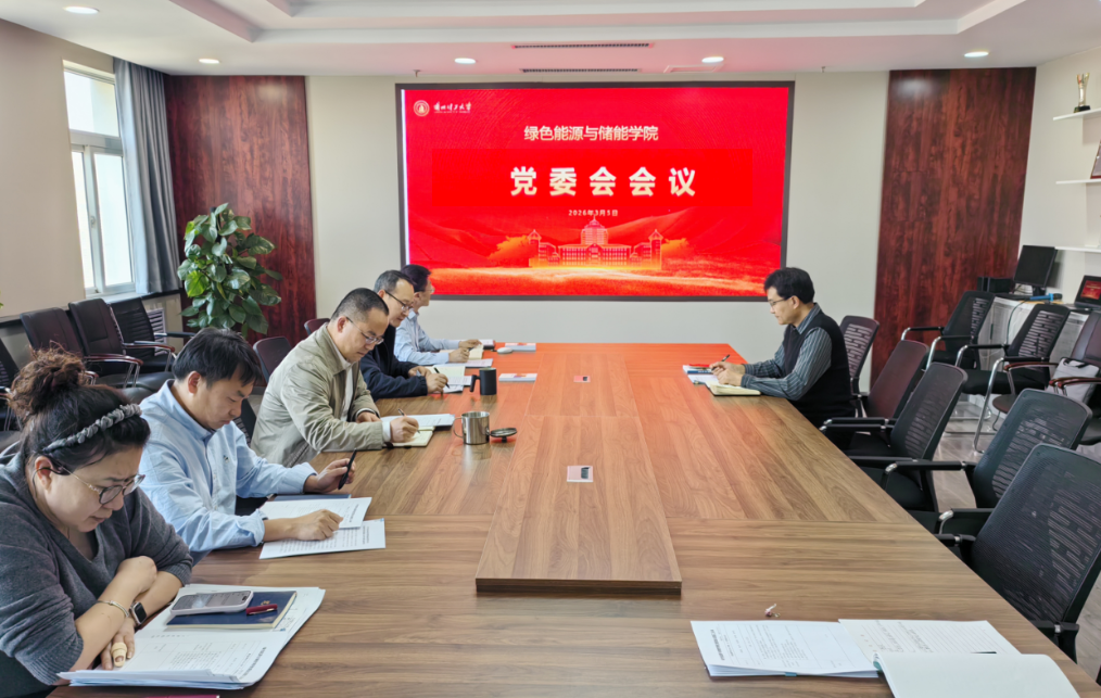 3月5日下午,绿色能源与储能学院在综合实验楼会议室召开了党委会会议,专题学习贯彻习近平总书记关于树立和践行正确政绩观的重要讲话和重要指示精神,传达学习学校关于树立和践行正确政绩观学习教育工作要求。会议由学院党委书记李德顺主持,学院党委委员及领导班子成员参加。