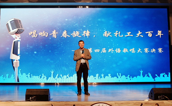 2019年6月4日晚,兰州理工大学外国语学院“唱响青春旋律 献礼工大百年”第四届外语歌唱大赛在兰工坪校区大学生活动中心拉开帷幕。出席本次大赛的嘉宾有兰州理工大学外国语学院院长任育新、外国语学院党委副书记焦娜,评委有外国语学院团委书记贾永胜、外国语学院第十三届团委学生会主席陈晓婷、外国语学院第十三届团委学生会副主席陈牛牛、第十四届团委学生会主席杜茂仁以及红柳艺术团声乐部部长杨睿。本次比赛为进一步激发大家学习外语的兴趣,提高学生外语口语的表达能力,开辟了外语学习的新途径;同时为营造健康向上、积极进取的校园学习氛围,切实提高大学生外语学习能力,特别是口语表达能力,为爱好外语口语交流的朋友搭建一个施展才华提高外语能力的平台。