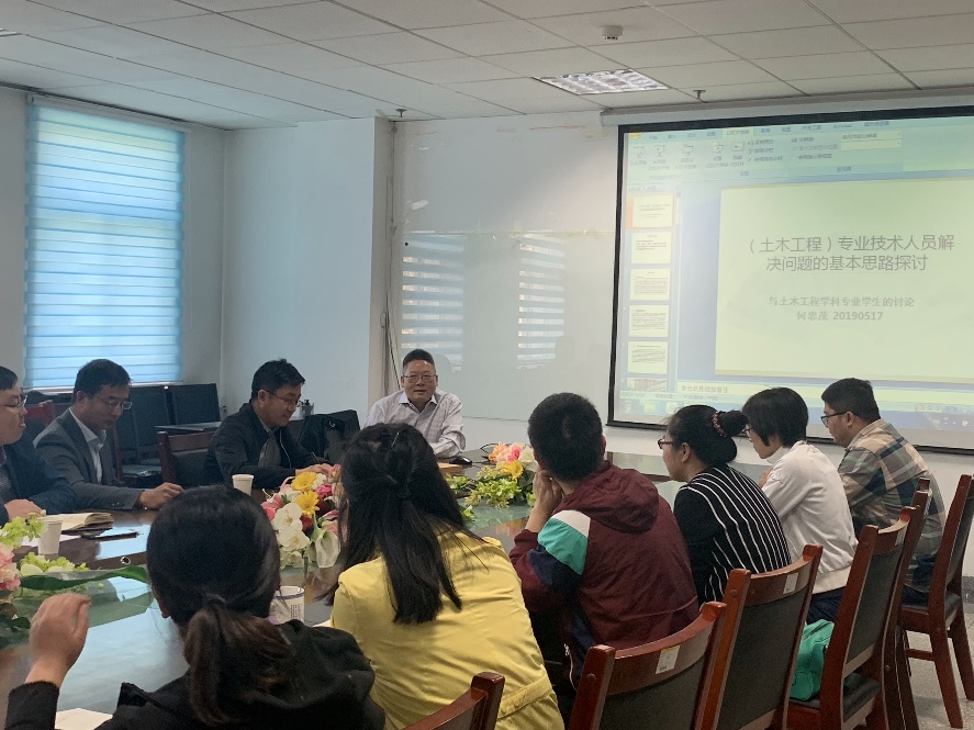 5月17日,宁波大学何忠茂教授应邀来校作题为“土木工程专业技术人员解决问题的基本思路探讨”的学术报告,此次学术会议由土木工程学院副院长殷占忠教授主持。