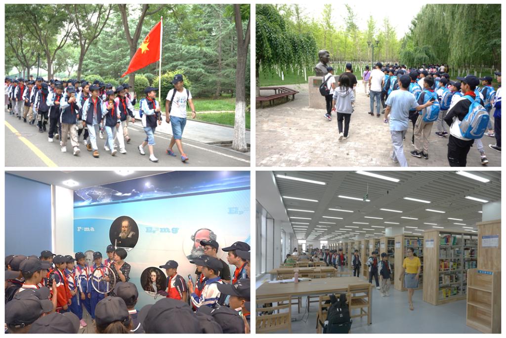 活动伊始,王斌对本次参加研学的活动的师生表示热烈的欢迎,志愿者们将师生分为小组,并为师生分发了书包、矿泉水和印有兰州理工大学字样的帽子。随后,在志愿者的陪同下,各小组从宜海湖畔到银杏林,同学们时常被校园美景吸引驻足欣赏;穿过银杏林途径玉川广场时,志愿者为同学们讲述了魏玉川同学的英雄事迹,在同学们心中播下了真善美的种子;物理实验中,同学们观察了许多奇特的物理现象,激发了他们对科学的兴趣;图书馆中,同学们参观了借阅室、阅览室、自习室等,体验了先进的自助借阅设备,让他们感受到了浩瀚书海的魅力之处。支部组织委员黄凯凯为同学们做了精彩的励志报告,引导同学们常怀感恩之心,对未来充满希望,争做优秀的自己,现场气氛十分活跃。