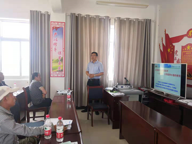 培训中,兰州理工大学新能源精准扶贫团队的李金平教授、王昱副教授、郑健副教授等8名师生,对当地村民进行了“高效节能日光温室大棚的设计与建造”“太阳能光热利用技术—太阳灶、太阳能热水器的使用”“水肥一体化技术”、“农作物跨季节青贮技术”和“农村户用太阳能恒温沼气池技术”等的培训。