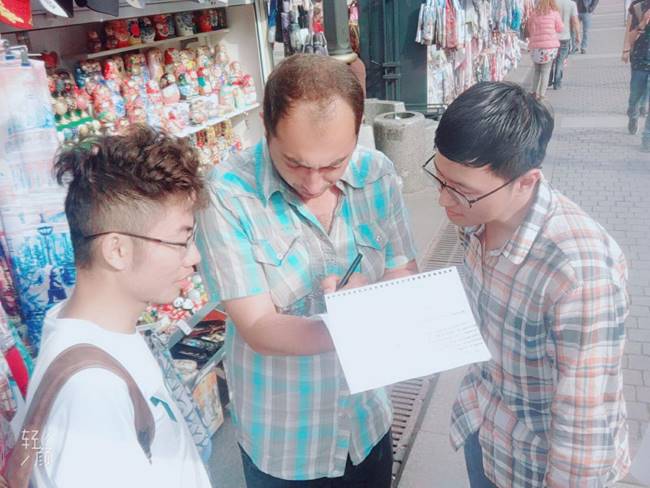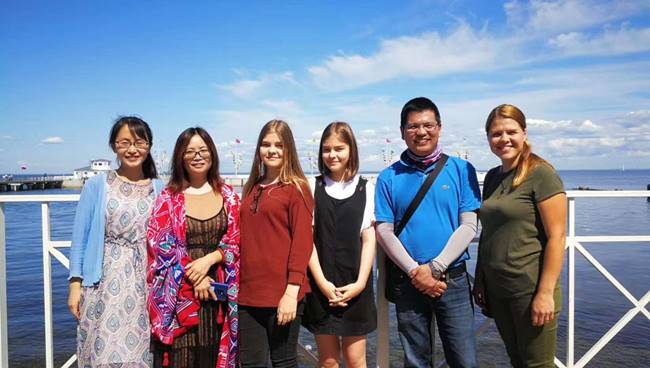 除此之外,土木学院圣彼得堡实践团在老师的带领下,与当地各阶层百姓进行了充分的接触和交流,包括:船员、来访过中国的工程师、小作坊面包店老板、餐厅工作人员、垂钓者、有轨火车售票员、中学生、国外游客等等,用肢体语言、英语、简单的中文或者翻译器进行沟通,即使存在语言上的不便,但沟通却没有任何的障碍,友好平和、其乐融融,他们都有着想更进一步了解中国的意愿,希望将来到访中国,或者来中国学习。师生穿着带有工大百年校庆Logo双语T恤衫,有很高的辨识度,不仅为实践活动的开展提供了身份上的便利,同时也展示了我校甚至中国大学生的形象。