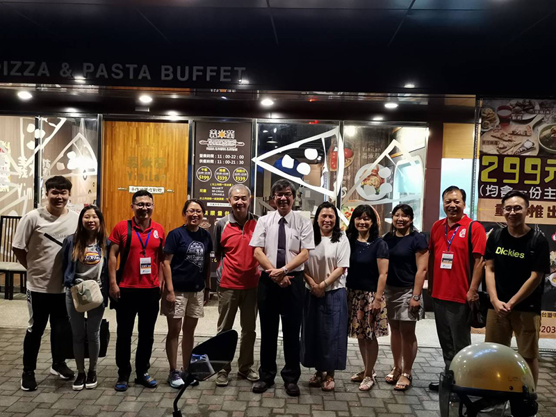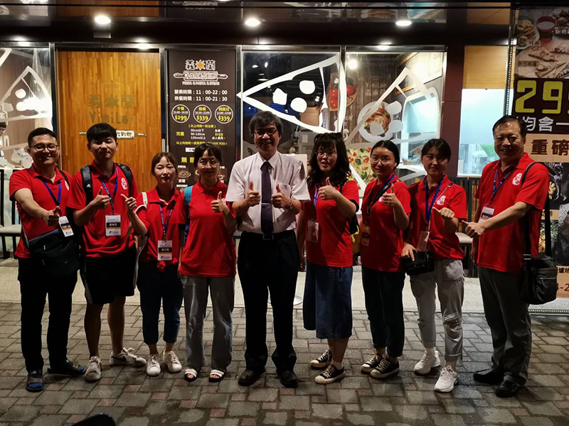 我校师生抵达机场后受到静宜大学国际暨两岸事务处大陆事务组组长吕富美和志愿者学生的热情接待,在机场合影留念稍作休整后,乘坐大巴车冒雨行驶两个多小时抵达台中市静宜大学,校园道路两旁榕树沧桑、风景如画,接待组安排师生住进了学生公寓。静宜大学学术副校长王俊权教授、食品营养学系主任钟云琴教授和本次专业授课教师参加了为我校师生举行的欢迎式聚餐,气氛融洽、交流热烈。