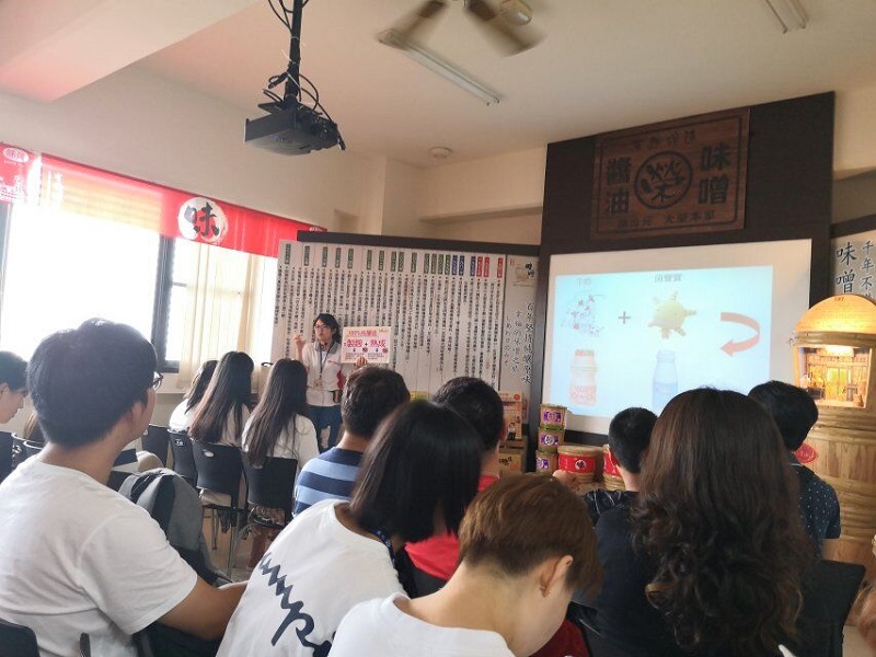 8月20日下午,学校赴台学习实践团乘车到台中市丰原区台湾荣味食品工业股份有限公司进行参观学习,在企业讲解人员的引导下,实践团师生参观了味噌、酱油、荫油、养生红曲等台湾特色酿造食品的制作过程,这些产品以大豆、粳米、黑豆、盐巴等原料,经过选别、洗净、浸渍、蒸煮、称曲、发酵、添加辅料等步骤酿制而成。