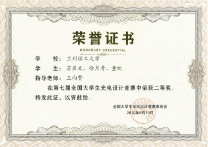 经过赛前的充分准备,我校微纳光刻团队设计了参赛作品亚波长纳米孔光刻机,用于刻写椭圆形亚波长纳米孔阵列,且其相关理论工作已经发表在SCI收录期刊Results in Physics(2019, 14, 102460, IF=3.042),本科生童欢(2015级应用物理学专业)为论文第一作者,王向贤副教授为论文通信作者。另外,团队通过3D打印技术,制作了亚波长纳米孔光刻机的模型,该光刻技术具有大面积、低成本等优势。团队在西安邮电大学举办的第七届全国大学生光电设计竞赛(西北区赛)中脱颖而出。经过网络评审、路演评定、作品答辩等环节,最终进入全国总决赛,荣获二等奖。