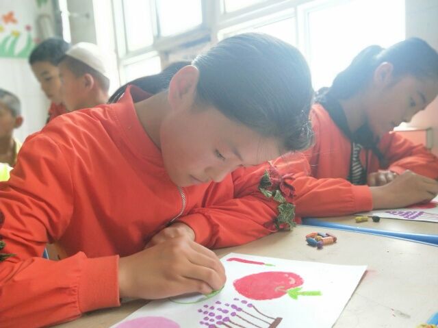 8月21日-22日,实践队一行来到了奴拉芒康家小学展开支教活动。走进教室,久久等候在这里的孩子们对这些近几天在村里画墙的哥哥姐姐们丝毫没有怯意,教室里热烈的掌声此起彼伏。队员们在课堂上向同学们讲解了最基本的美术知识,教大家画最常见的玉米、苹果、茄子等果蔬。这些从未上过美术课的孩子们,用五颜六色的画笔,认真的图画着,有些小朋友创作的作品赏心悦目,让队员们出乎意料。孩子们还为哥哥姐姐们表演了精彩节目,支教现场一片欢声笑语。22日上午,在实践活动即将结束之际,队员们为这里部分学习优异的小朋友们捐赠了书包、笔盒等文具。队员们通过捐赠这种形式,鼓励孩子们好好学习,将来用知识改变自己的命运,回报自己的家人,建设自己的家乡。在6天的实践活动中,队员们和这里的孩子们结下了深厚的友谊,也将美育的种子播撒到了东乡这片土地上。临别之际,有的小朋友拉着队员们的手,迟迟不愿松开,队员们深受感动,叮嘱大家孩子们一定要坚持读书,并且约定以后还会来教大家画画。