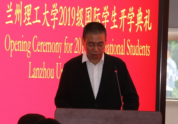9月24日下午,2019级国际学生开学典礼在彭家坪校区图书馆104报告厅举行。学校党委常委、副校长陈志华,甘肃省国际文化交流协会秘书长王晓琴、副秘书长魏明旺,兰州市公安局出入境管理处副处长达钢、赵蔚娜,兰州市公安局七里河分局出入境管理大队大队长王雪青,国际学生导师代表、机电工程学院教师剡昌锋,国际教育学院全体教职工,2019级全体新生参加了开学典礼。开学典礼由国际教育学院院长朱昶胜主持。