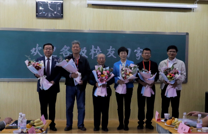 校友代表向曾经传道授业恩师刘翠兰、金少蓉、栗宜民老师献花。在校学生向58级校友袁海德先生和陈秉畴先生、77级校友李慧教授、83级校友苏跃华董事长、85级工民建校友娄宇勘察设计大师、90级校友赵多明董事长献花,纷纷表示要以优秀校友为榜样,“不忘初心,牢记使命”,为国家发展贡献力量。