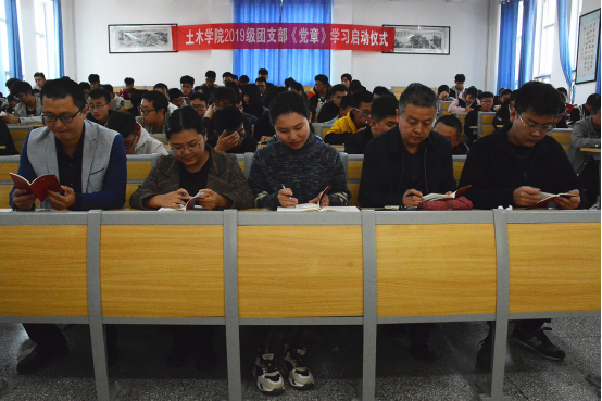 10月15日,土木学院2019级各团支部《中国共产党章程》学习启动仪式在彭家坪校区集贤楼205教室举行。学院团委书记樊洁平老师及部分辅导员参加启动仪式,2019级《中国共产党章程》学习小组全体成员参加了活动。
